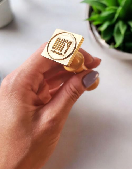 Kwadratowy WYPUKŁY stempel z logo do ceramiki, świec, mydła, lodu
