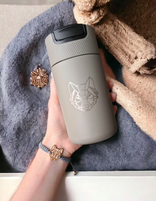 Zestaw Bransoletka z motywem wilka, kubek termiczny z grawerem i podstawka pod kubek