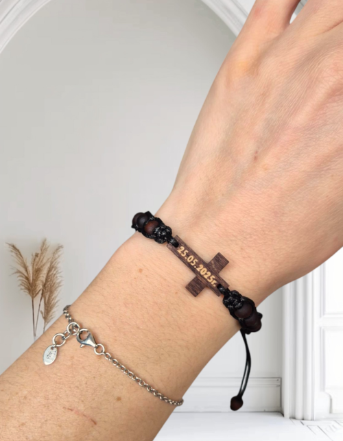 1 bransoletka z grawerem, Bierzmowanie, Bransoletki drewniane, Bransoletki z koralikami, Krzyż, Motywy, Okazje, Pojedyncza bransoletka, WSZYSTKIE PRODUKTY