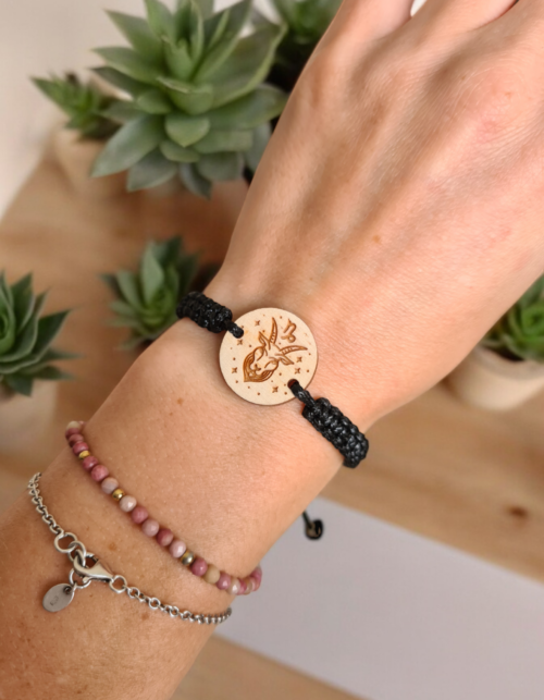 Drewniana Sznurkowa Bransoletka Znak Zodiaku