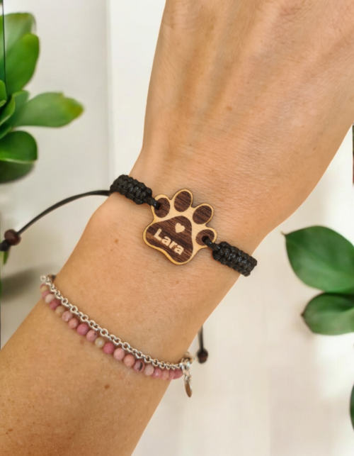 Sznurkowa Bransoletka z imieniem Psa Drewniana zawieszka