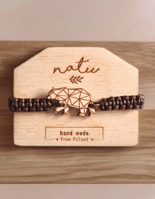 Drewniana Bransoletka Niedźwiedź na sznurku